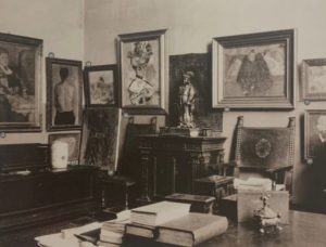 Pablo Picasso, Retrato de Gustave Coquiot, 190146x37cm Óleo sobre cartón Fundación Colección EG Bührle Uno de los primeros en advertir la influencia de El Greco en la gestación del periodo azul de Picasso fue el crítico Gustave Coquiot. Según la comisaria de la exposición Carmen Giménez y autora del texto del catálogo Coquiot fue pionero indicando la influencia del cretense sobre Picasso. Después de un viaje a España, vuelve cargado de retratos salvajes y, a decir verdad, muy curiosos. Esto de nuevo no dura; él siempre persigue algo original; y como de repente se ha quedado prendado del Greco, y ha puesto fotografías de los in- creíbles cuadros de este maestro por todas las paredes de su habitación, inventa el periodo azul. Gustave Coquiot, Cubistes, futuristes, passéistes: essai sur la jeune peinture et la jeune sculpture, París, Libraire Ollendorff, 1914 A lo largo de la historia, el color azul ha